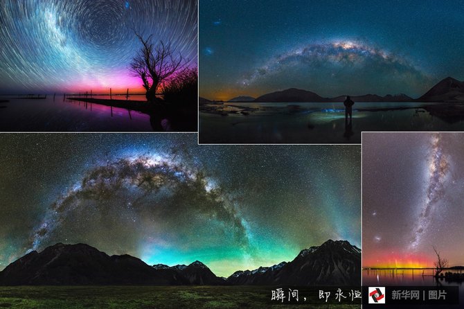 2015年12月15日报道,29岁的摄影师Paul Wilson行路900英里在新西兰南岛一个最佳位置,花费4小时捕捉到了一系列令人震撼的极光和银河美景。美丽的夜空光色交汇,五彩斑斓,如同变幻莫测的万花筒一般,美到令人窒息。