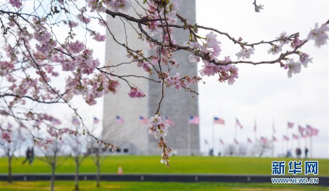 当日,已步入冬季的华盛顿最高气温达到21摄氏度,华盛顿纪念碑前的樱花繁盛似春日。 新华社记者 鲍丹丹 摄