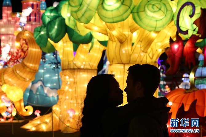 12月25日晚,游客参观美国加州萨克拉门托的“天下华灯”中国彩灯灯会。