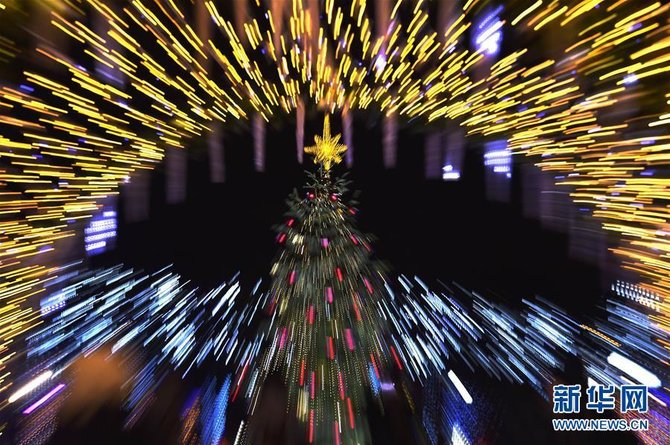 12月22日,一棵灯光装饰的圣诞树矗立在俄罗斯首都莫斯科市中心。 新华社/法新