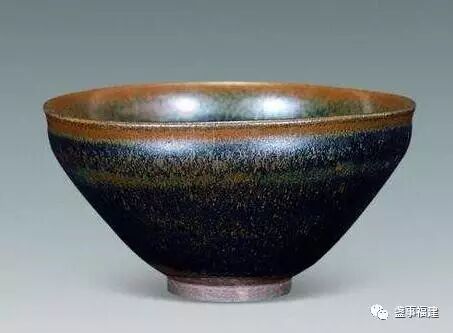 从釉面来分析,不同的釉面所呈现出的纹样和颜色都会有所不一。与清三代注重人工精致绘制的瓷器不一样,建盏更多讲究的是烧制过程中外部因素对其所带来的不可控的创意设计,沿着杯壁缓缓形成的放射性或者斑点性的釉面化学变化,其带来的组合和纹路都是带着一丝丝的不可控。这与当时崇尚的“自然、天人”的思想息息相关。