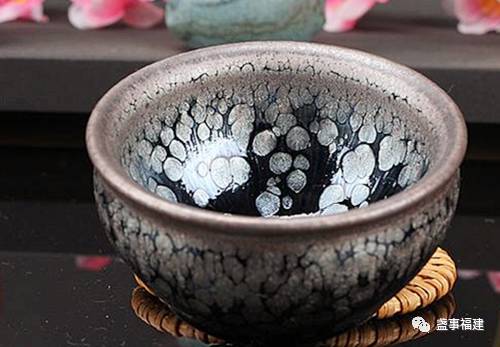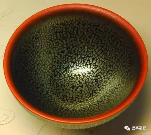 但是想要烧制出好看的釉面,那也不是一件容易的事情,一是需要控制釉面斑点的成型范围,二是需要控制窑内的温度,往往斑点越大、越圆、越清晰的建盏,成型的条件相对苛刻。但宋代建盏所烧制成型的油滴盏受到了当时生产技术水平的限制,缺少了还原焰的进一步烧制,其最终的成品在色彩上乃至在清晰度上都相对逊色。