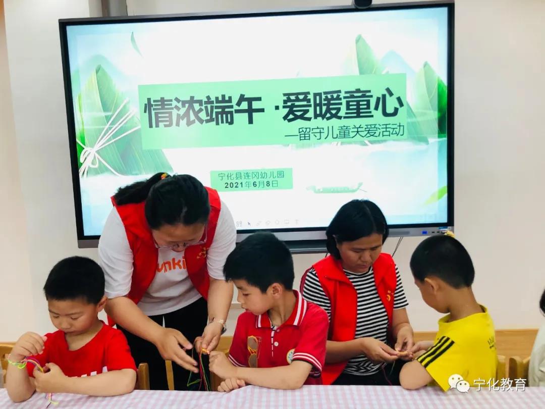 三明市宁化连冈幼儿园开展“情浓端午爱暖童心”关爱留守儿童活动,志愿者老师向留守儿童送上端午节礼物,为孩子们讲述屈原的故事和端午节的由来,并与孩子们制作“五彩绳”和“香囊”,和孩子们一起品味美味的粽子,让留守儿童们充分感受节日的欢乐氛围,体会到大家庭的爱与温暖。