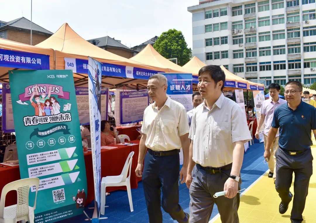 省教育厅党组成员、副厅长李迅、省人工智能科教学会会长吴向阳和省财政厅教科文处、省教育厅学生处、晋江市人社局负责人到招聘会现场指导,并与企业代表、学生亲切交谈。