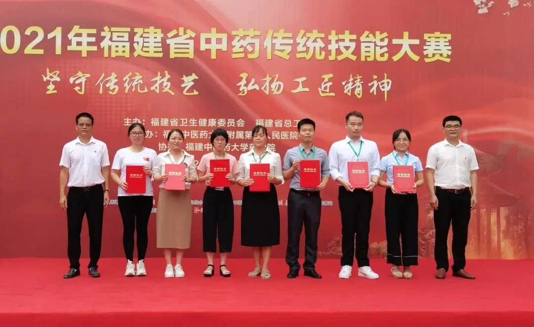经过基本理论笔试、中药性状鉴别、中药显微鉴别、审方、中药调剂、中药炮制等多方位激烈角逐,福州市卫生健康委员会代表队脱颖而出,荣获团队一等奖,福州市中医院潘鸿贞(指导老师)荣获个人突出贡献奖,福州市第二医院曾伟生获个人单项第一名(中药显微鉴别)。福州中药人以优异成绩向党的百年华诞献礼。